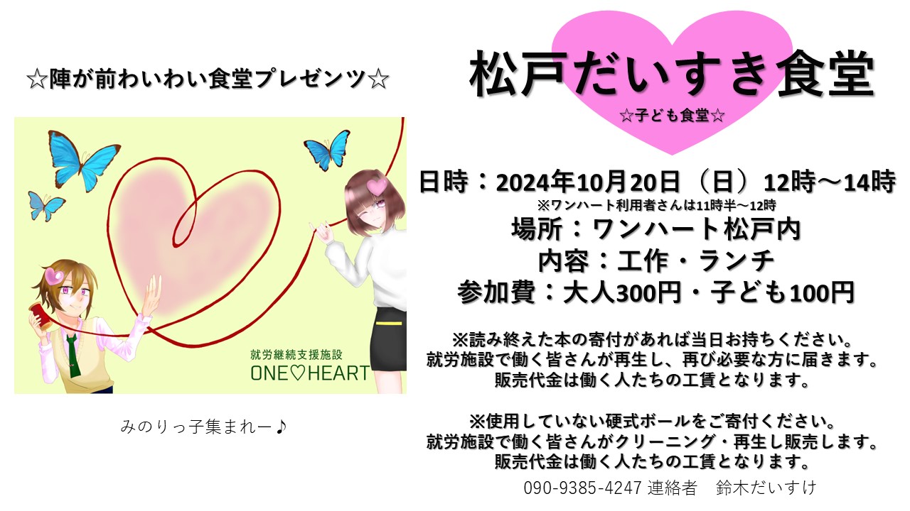 10月の松戸だいすき食堂は20日(日)。みのり子集まれー♪